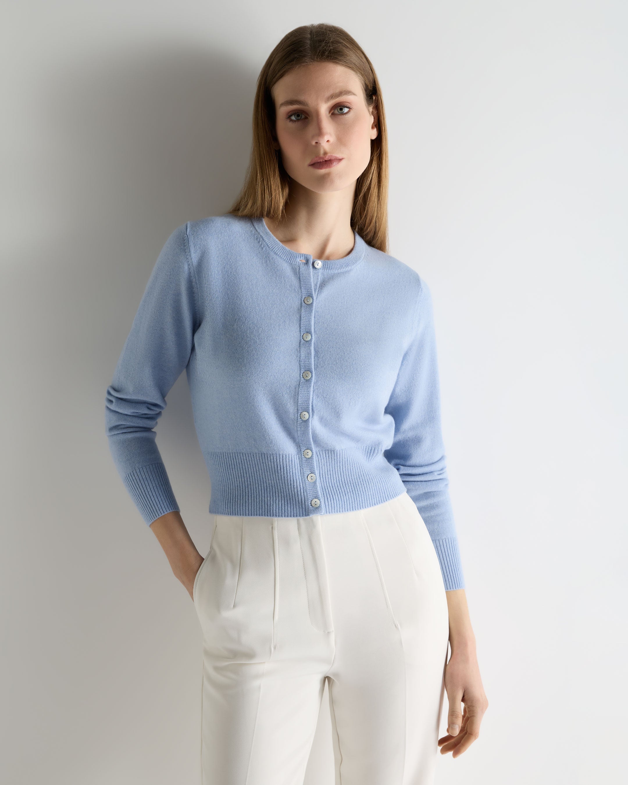 A modern layer with an elevated sense of ease, this cropped cardigan offers a refined way to dress for city days, weekend plans or elegant evenings out. Light, soft and beautifully proportioned, it brings a contemporary silhouette to classic cashmere.
