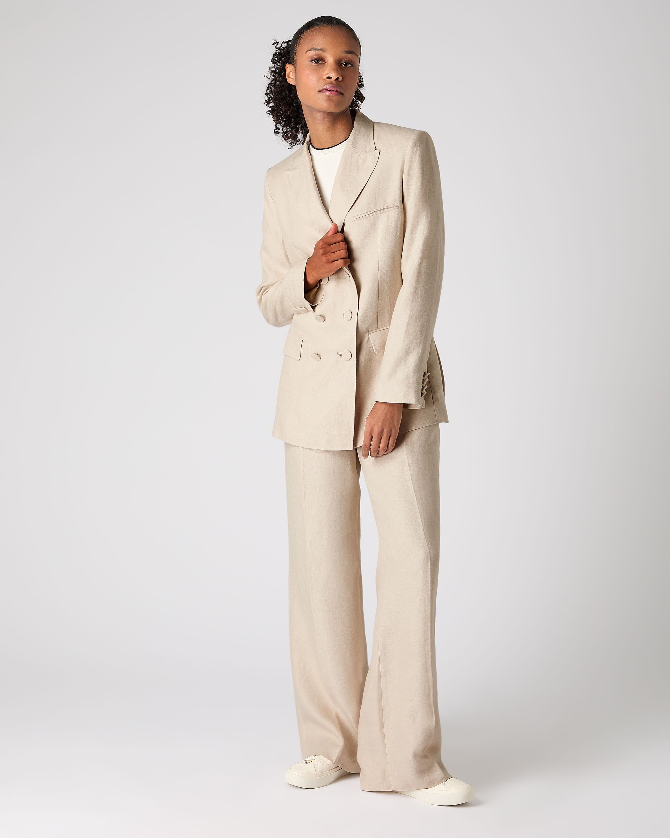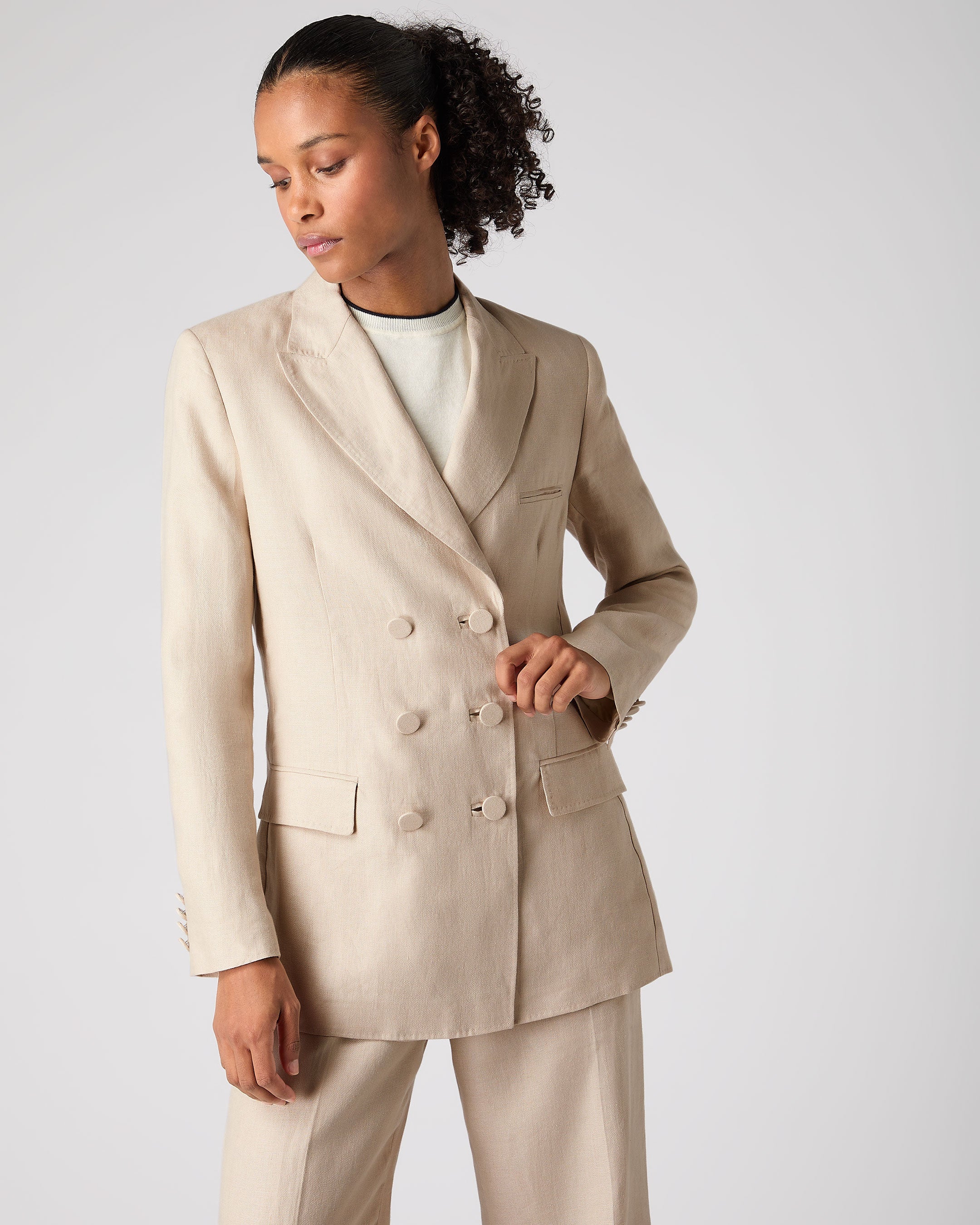 Women's Ava Double Breasted Linen Jacket In Oat Brown