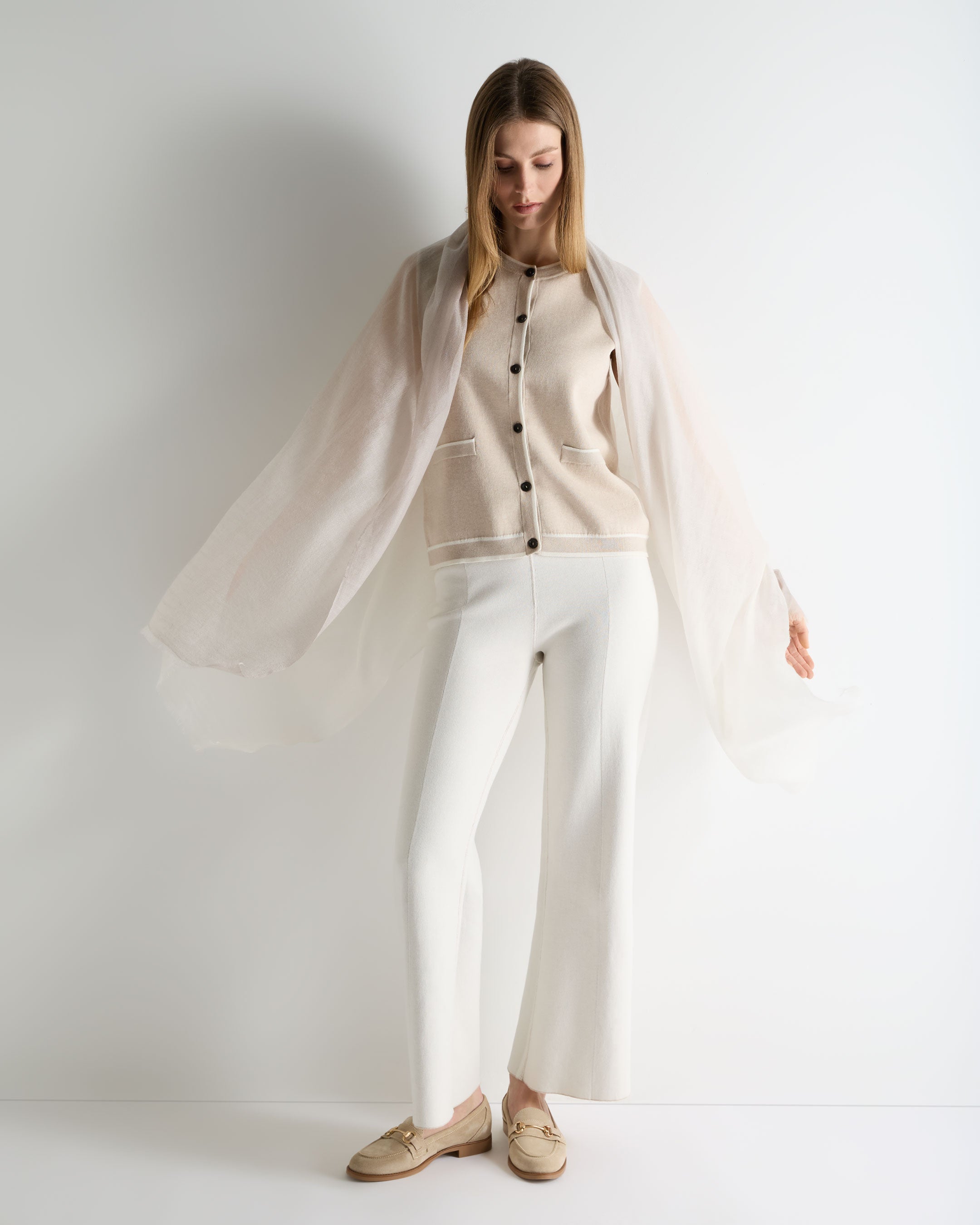 – Crafted from a considered blend of 70% cotton, 20% silk and 10% cashmere, offering a smooth, breathable handle with a softly elevated feel