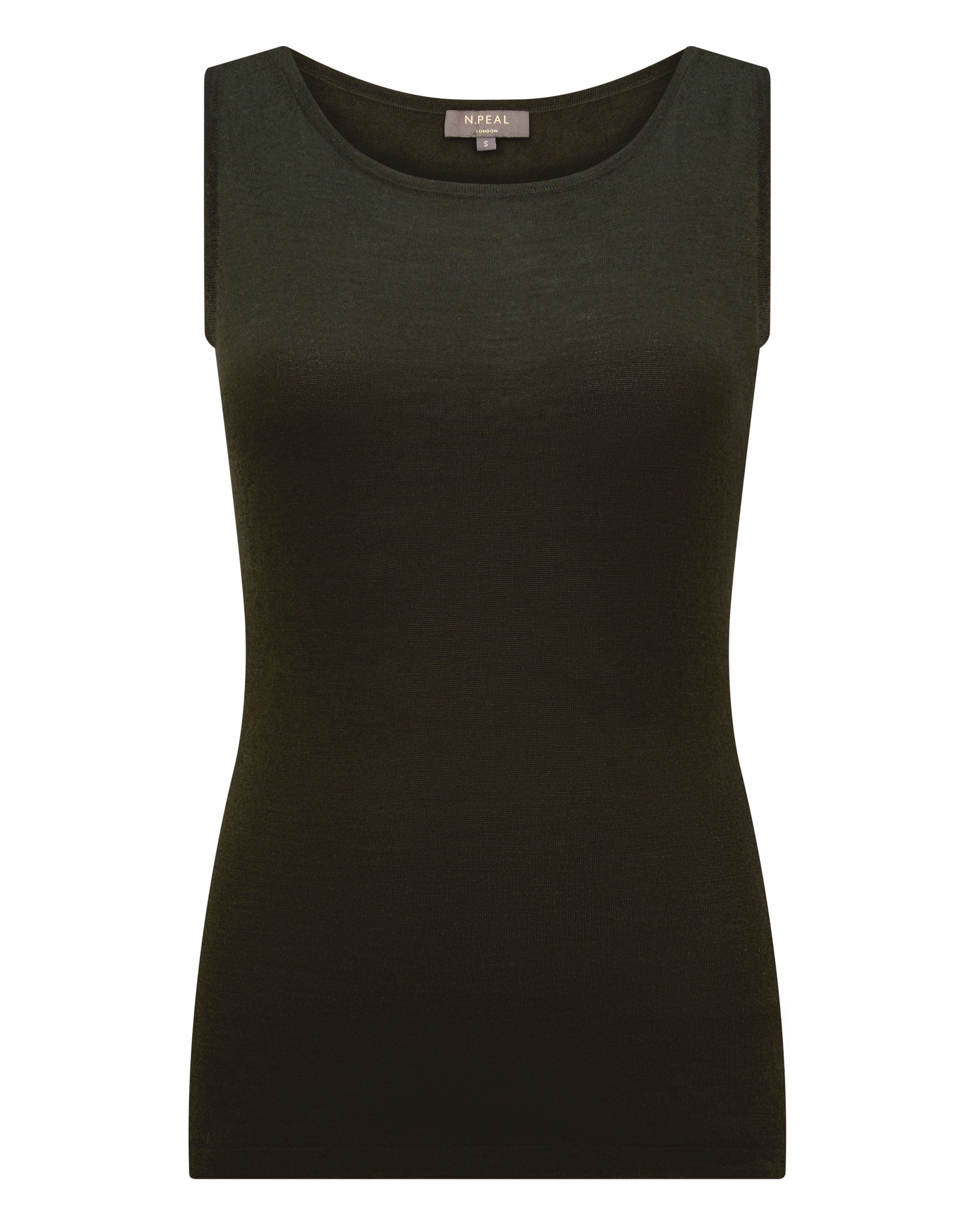 Women's Ella Superfine Cashmere Shell Top In Arabica Khaki Green