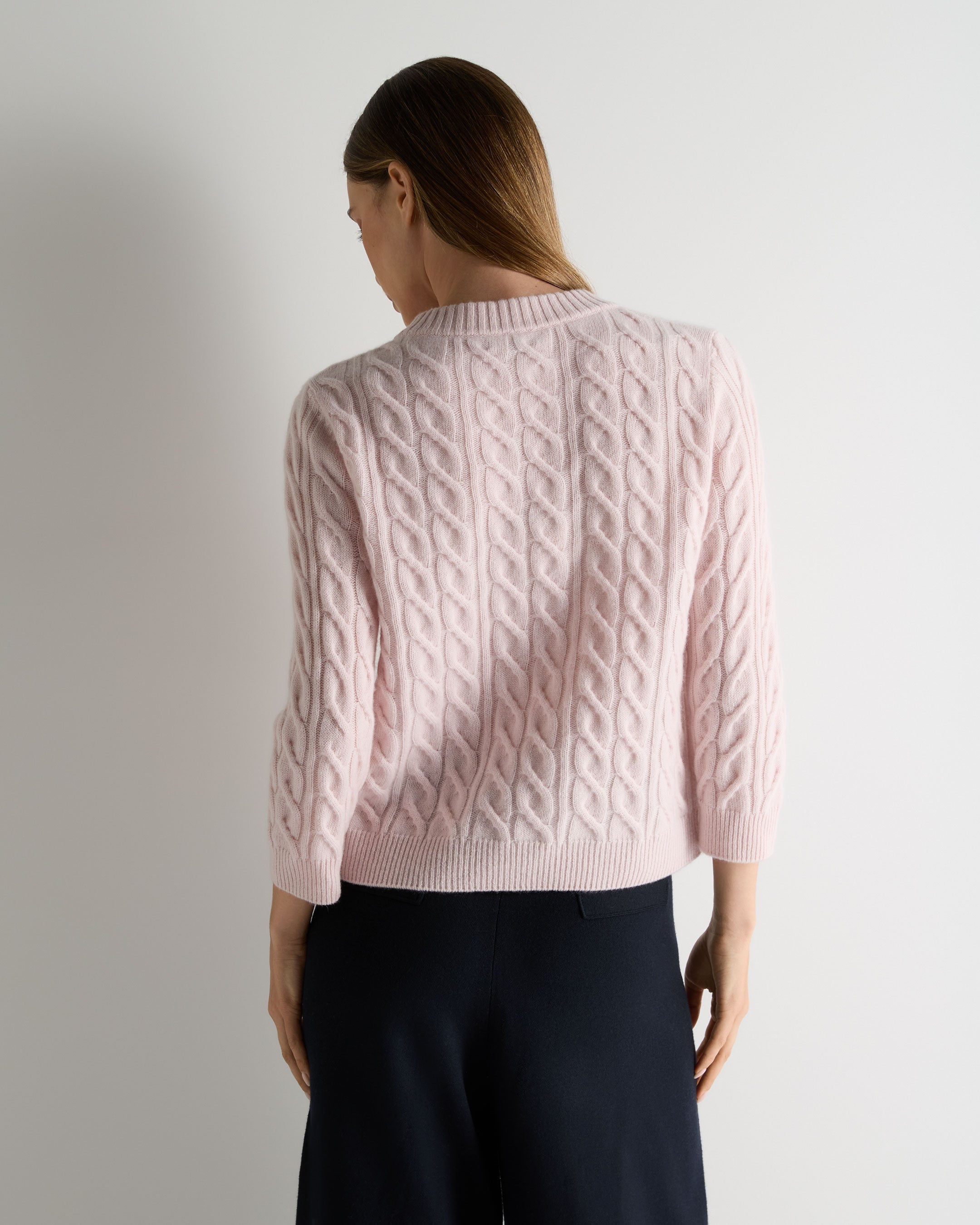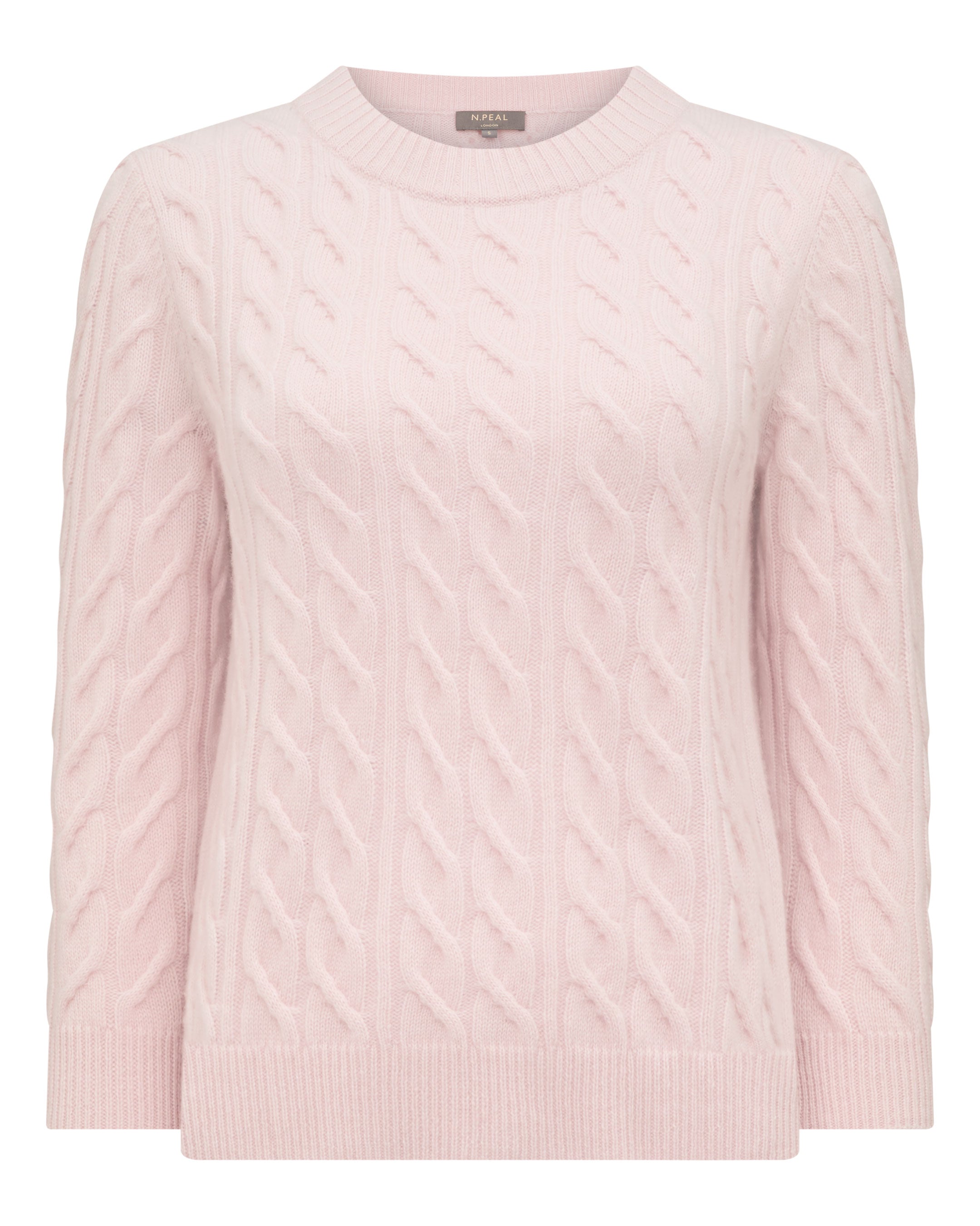 Women's Emilia Cable Round Neck Cashmere Jumper In Powder Pink