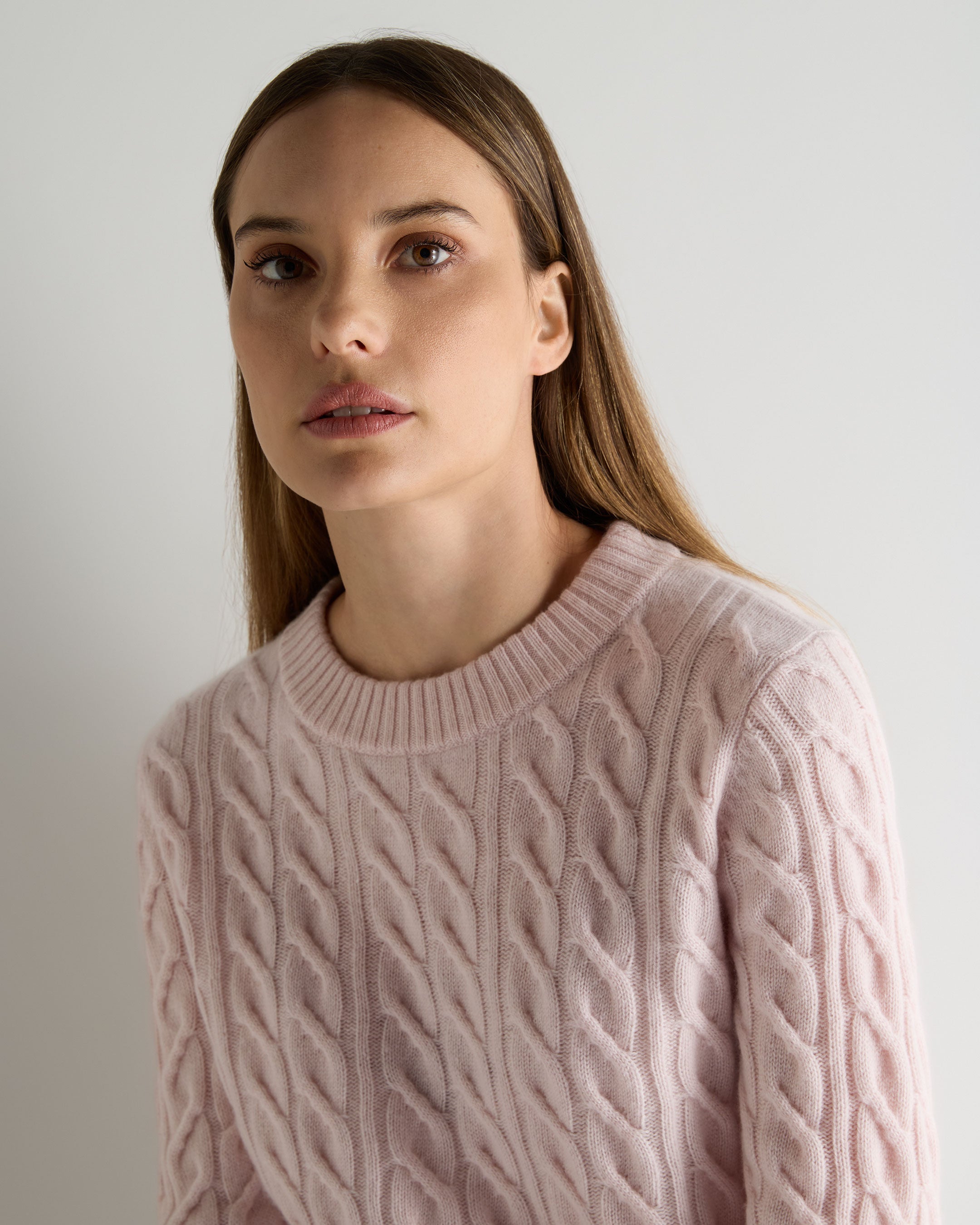 A timeless staple with an elevated, contemporary feel, this cable-knit round neck brings effortless sophistication to colder days. Its sculpted texture and beautifully soft handle make it the ideal piece for crisp mornings, relaxed weekends or refined après-lunch dressing.
