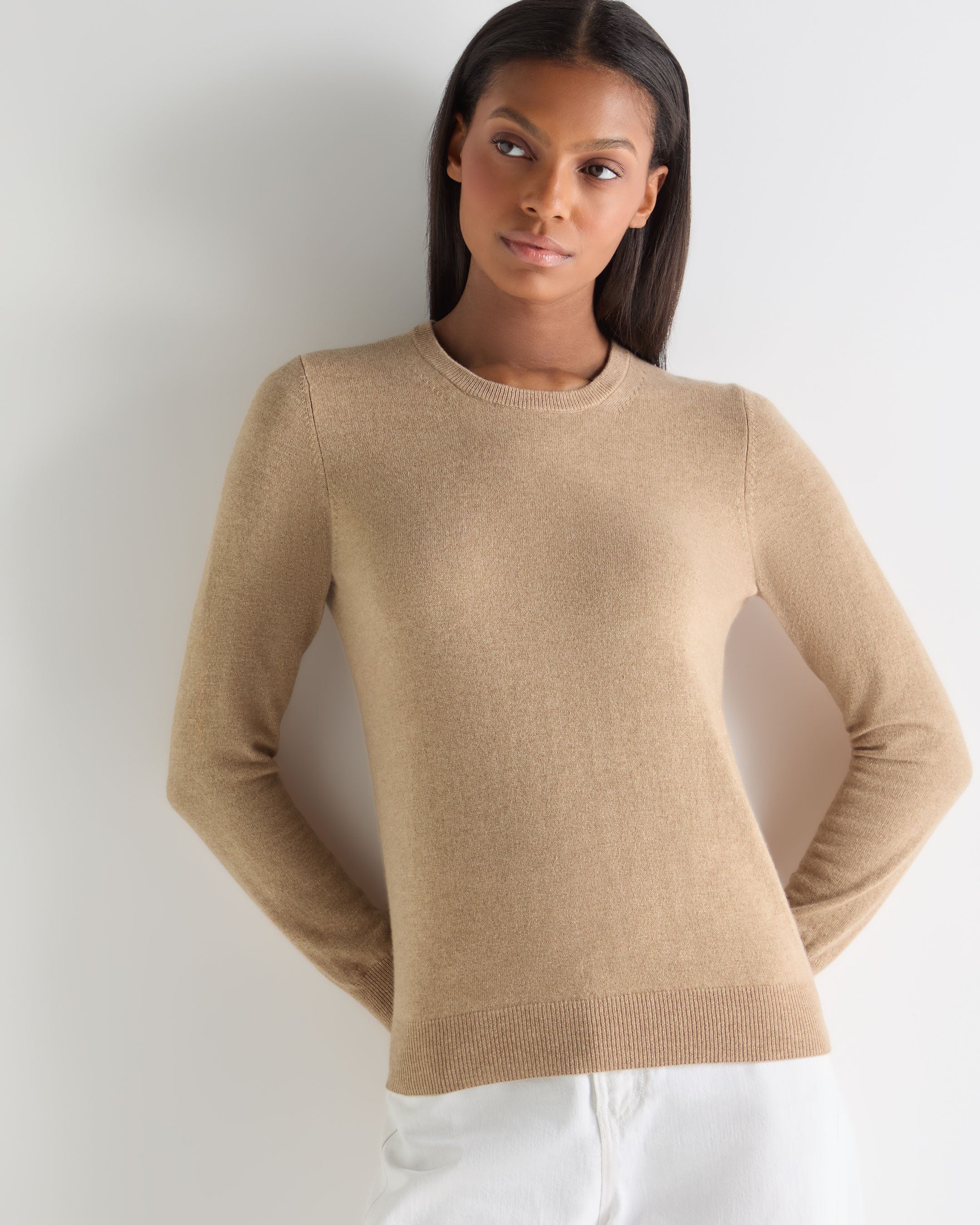 An understated staple with an easy sense of refinement, this round neck jumper brings elevated comfort to every setting — relaxed mornings at home, crisp coastal walks, or polished days in the city. Its clean silhouette and super soft feel make it the piece you’ll reach for season after season.