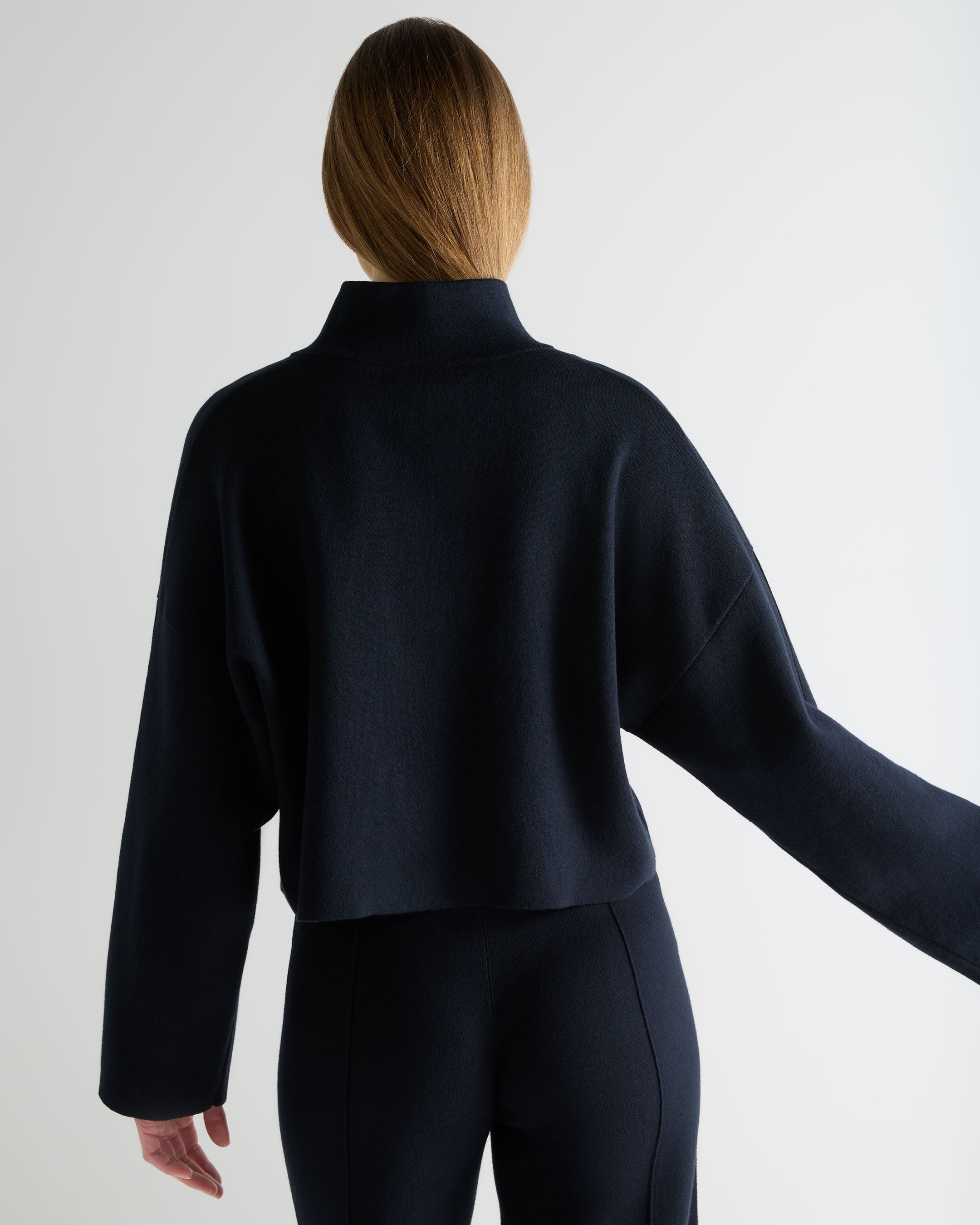 A modern staple with a refined, architectural edge. This half-zip sweatshirt is cut to a clean, cropped silhouette that offers instant polish while still feeling...