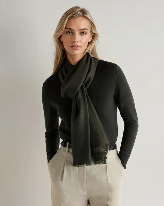 N.Peal's world famous cashmere woven pashmina shawl, stylish and beautiful to wear.