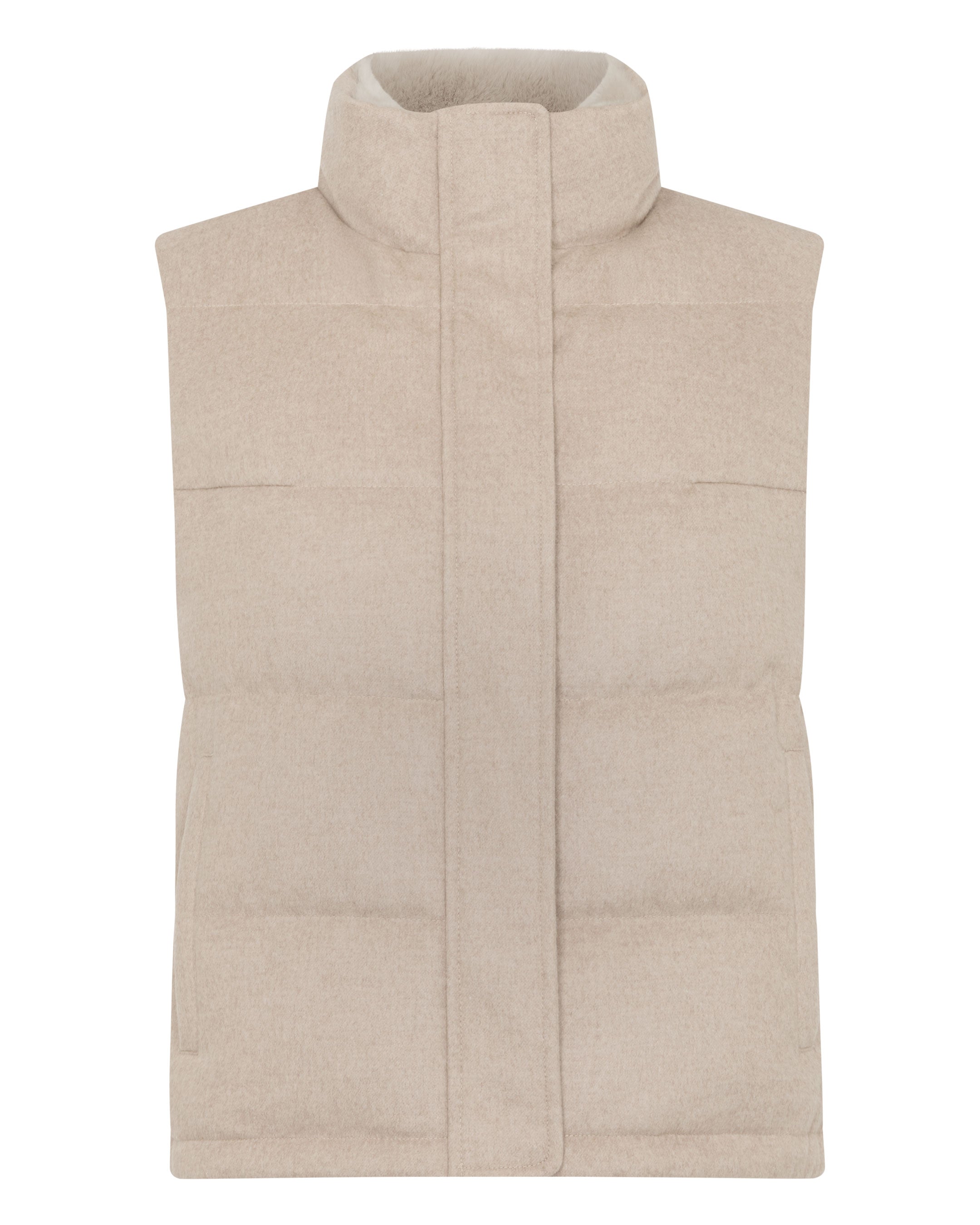 A sophisticated answer to transitional layering, this reversible gilet pairs feather-light elegance with indulgent warmth. Designed for crisp countryside mornings, relaxed city strolls or adding a polished layer to travel outfits, it offers two luxurious moods in one impeccably crafted piece.