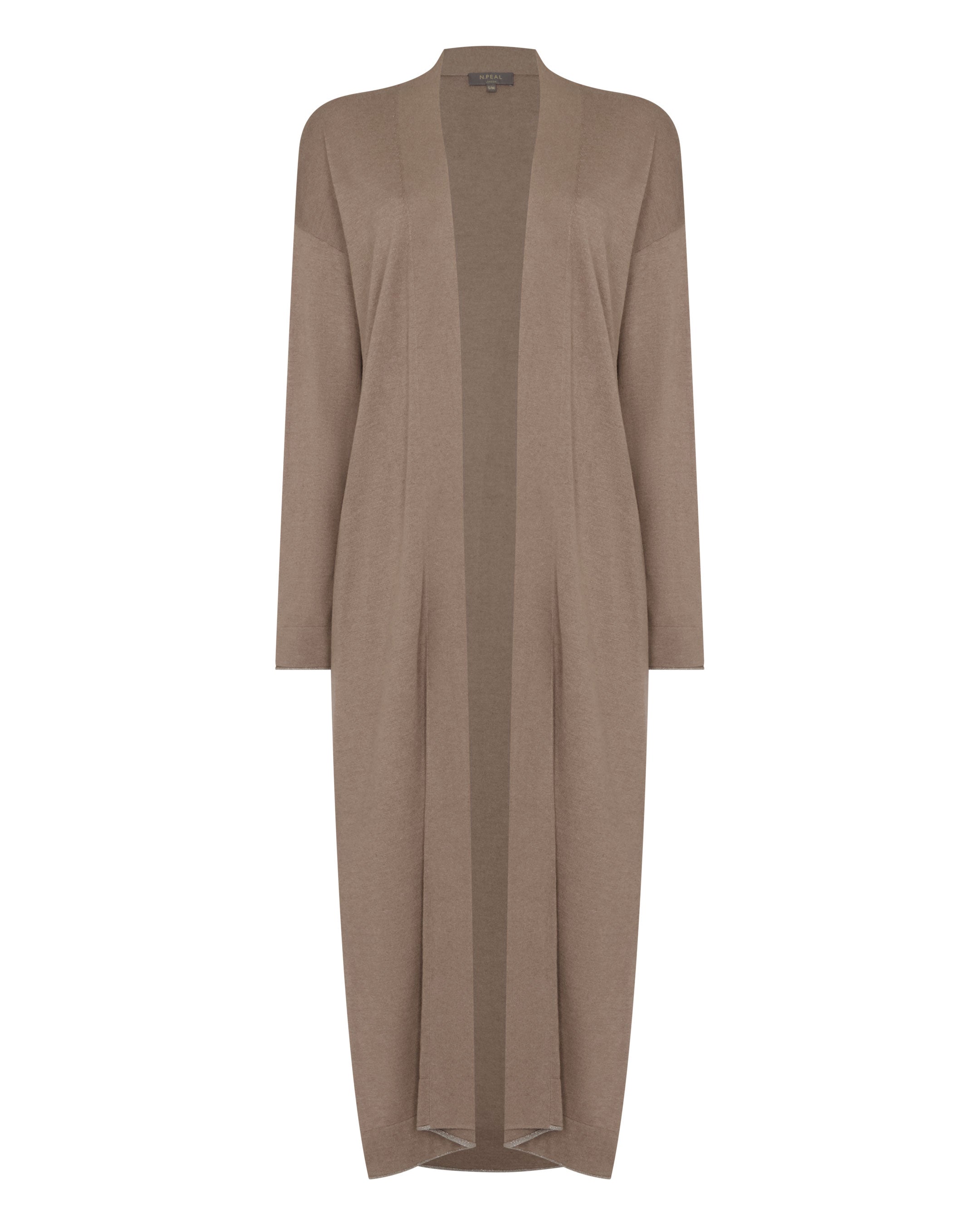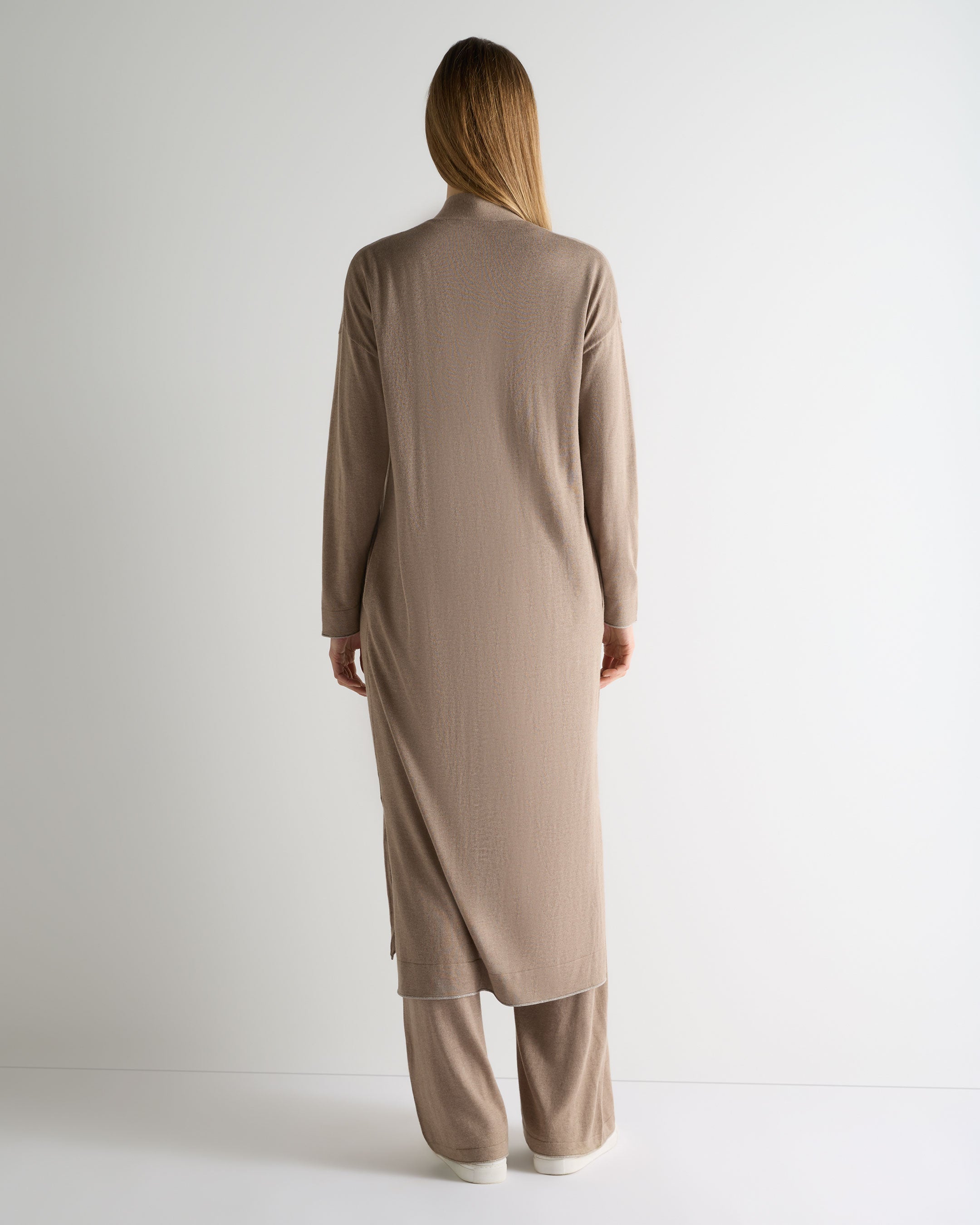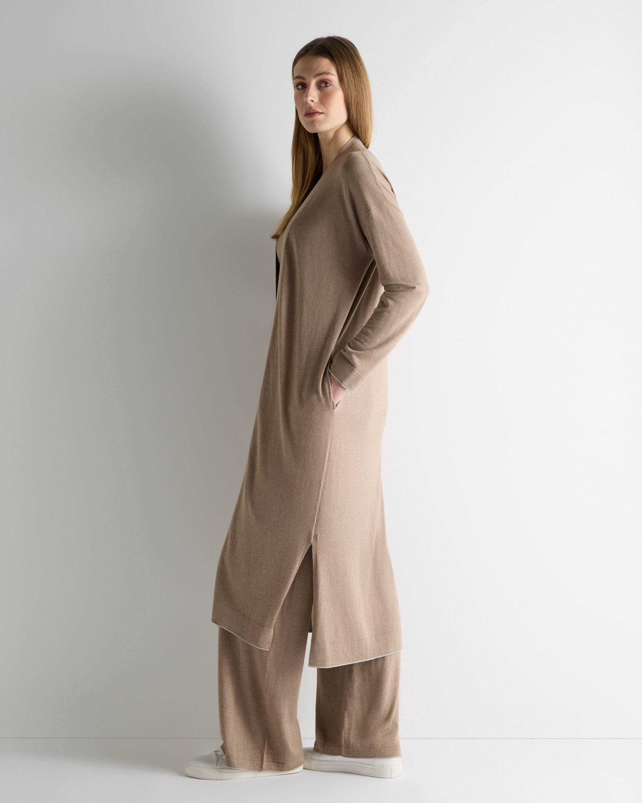 An elegant layer designed for fluid movement and understated refinement, this silk-blend cardigan brings a sense of ease to everyday dressing. Cut in a longline silhouette with an open front, it drapes beautifully over the body — ideal for moments when comfort and polish are equally important.