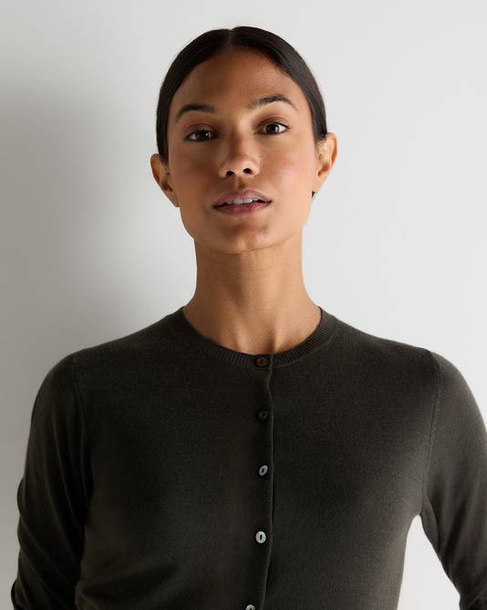 Women's Darcie Superfine Cashmere Cropped Cardigan In Arabica Khaki Green