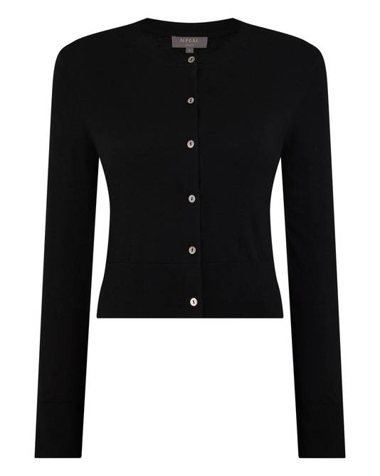 Women's Superfine Cashmere Round Neck Cardigan In Black