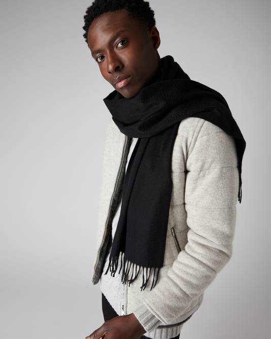 Unisex Woven Cashmere Scarf In Black